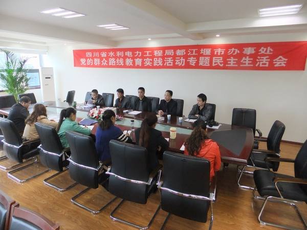 根據(jù)中央統(tǒng)一部署,按照黨的群眾路線教育實(shí)踐活動(dòng)專題民主生活會(huì)精神,局都江堰市辦事處于2013年10月18日下午,在水利大廈三樓會(huì)議室召開了黨的群眾路線教育實(shí)踐活動(dòng)專題民主生活會(huì)。局黨委委員、辦公室主任溫慶生,局勞動(dòng)人事處處長(zhǎng)舒建國(guó),局黨委辦公室主任夏永紅應(yīng)邀到會(huì)指導(dǎo)。局都江堰市辦事處班子成員、全體黨員、職工代表、科室負(fù)責(zé)人參加了會(huì)議。會(huì)議由黨支部書記孫代華主持。