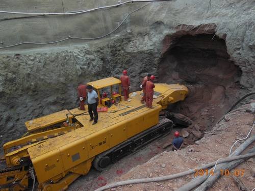 目前,EBZ318H型掘進(jìn)機(jī)是整個(gè)武引項(xiàng)目眾多施工單位中使用功率最大的一臺(tái),也是廠家生產(chǎn)的硬巖掘進(jìn)機(jī)系列中最大的型號(hào),同時(shí)也是工程局有史以來(lái)第一次使用隧洞掘進(jìn)機(jī)進(jìn)行隧洞施工。全新的施工工藝,標(biāo)志著工程局在隧洞工程施工技術(shù)方面邁上新的臺(tái)階。