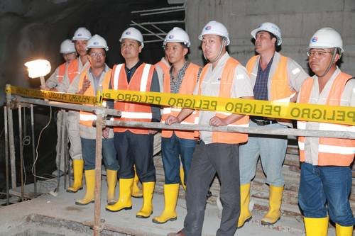 經(jīng)過兩天17000公里的長途飛行,在抵達厄瓜多爾TP項目部后,鄔局長不顧旅途勞累和時差影響,在項目部經(jīng)理高代勝、副經(jīng)理楊聰明、李靜、王安明等項目相關(guān)人員陪同下,先后到取水口閘壩樞紐、壓力隧洞進出口、地下廠房、尾調(diào)室、泄水洞等施工現(xiàn)場察看,詳細了解施工技術(shù)方案、設(shè)備、材料、人員,特別是厄瓜多爾當?shù)貏趧?wù)人員等具體情況,并不時提出指導(dǎo)意見。
